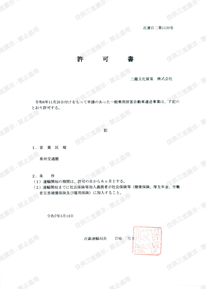 私たちは、安心につながるのは速さではなく、「丁寧に向き合ってもらえている」と感じられることだと考えています。だからこそ三龍は、法令遵守と安全を前提に、すべての移動を真摯にお引き受けしています。「三龍」という名には、中日両国の文化において“守り”と“吉祥”を象徴する龍の意味を重ね、行程・道路・安全への重視の想いを込めました。